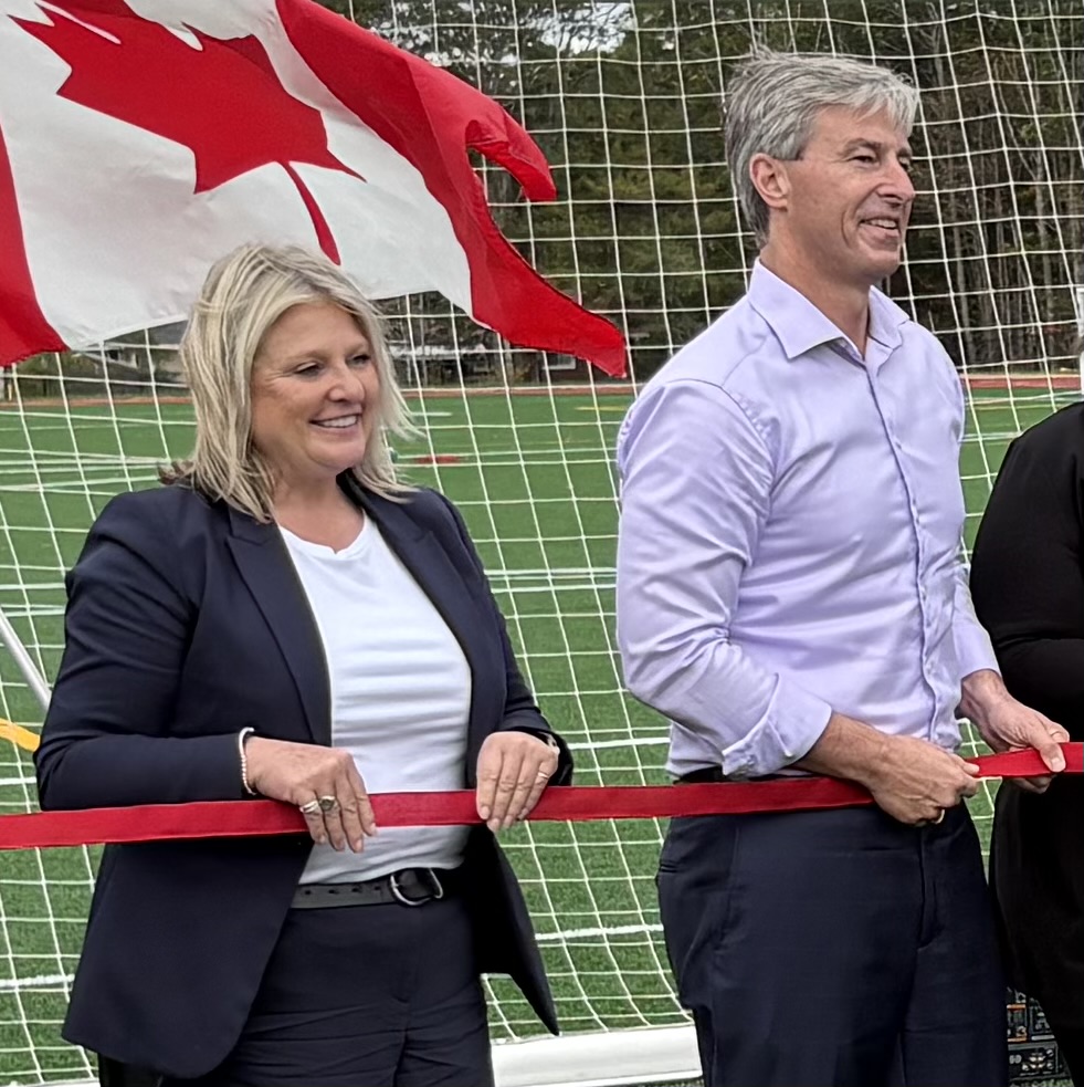 Queens MLA and newly appointed Minister of Natural Resources Kim Masland and Premier Tim Houston at the opening of the Steele Athletic Grounds in Liverpool earlier in October. (Rick Conrad)