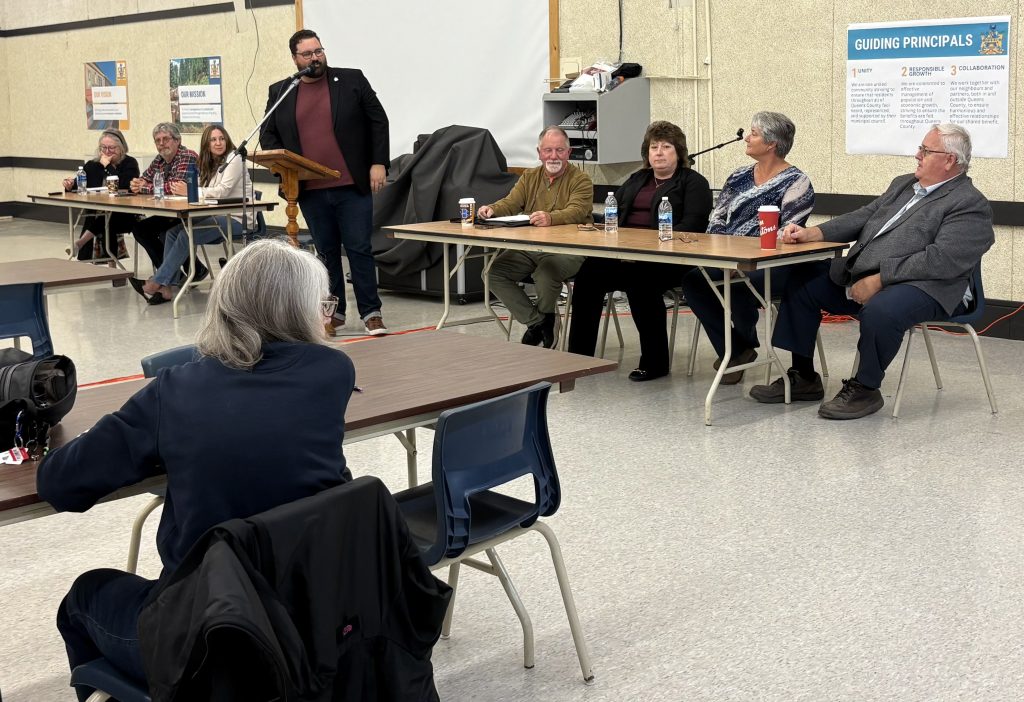 Region of Queens Mayor Scott Christian and his fellow councillors at a town hall session at the Liverpool Fire Hall in October. (Rick Conrad / File photo)
